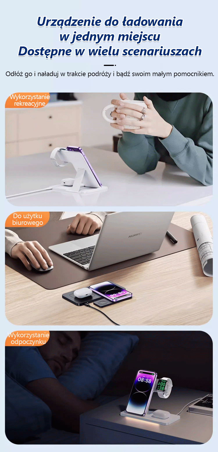 Przenośna składana magnetyczna ładowarka bezprzewodowa 3 w 1